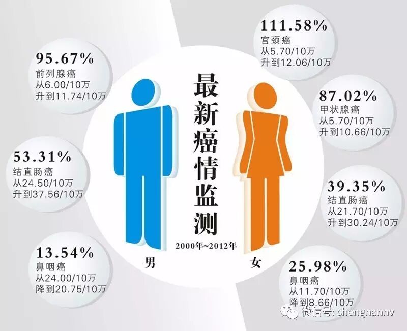 按照《2012年中国肿瘤登记年报》,纳入城市癌症早诊早治项目的五大类共6种癌症: